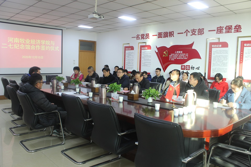 12月15日下午,学校与郑州二七纪念馆校馆合作签约仪式在英才校区教学楼327会议室举行。郑州二七纪念馆馆长张江山、产业发展部主任张滨、社会教育部主任郭星,学校副校长张卫宪、社会服务办公室主任胡迎利、成人在线免费观看党委书记张松刚、马克思主义学院院长白翔、马克思主义学院党总支书记王本聚等出席签约仪式。成人在线免费观看党委副书记贾艳艳、副院长孙晓林,马克思主义学院副院长郭霞等两院班子成员和师生代表参加仪式。