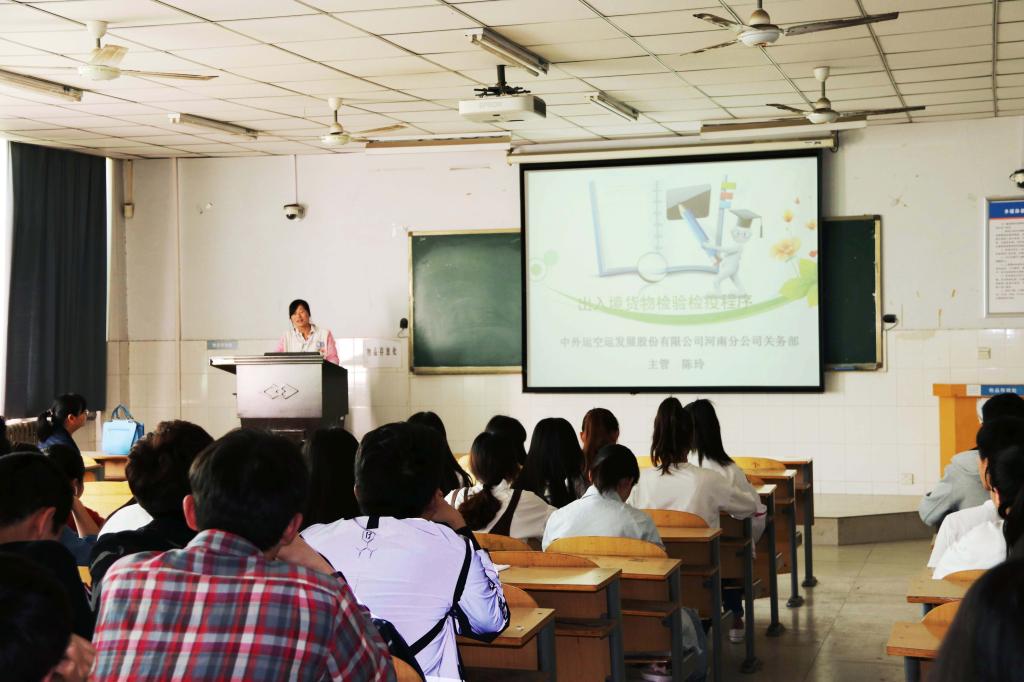 4月28日下午,经济贸易学院特邀中外运空运发展股份有限公司河南分公司关务部主管陈玲女士在W205教为国际贸易专业学生做题为《出入境货物检验检疫操作技巧》的专题讲座,受到经贸学院学生的热烈欢迎。