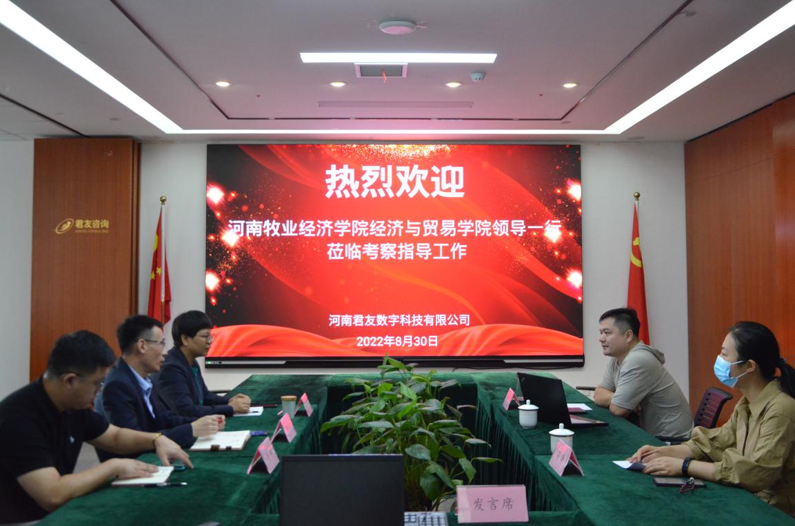 2022年8月30日,成人在线免费观看副院长梅星星、农业经济教研室主任吴静一行赴河南君友数字科技有限公司就深化校企合作进行磋商交流。