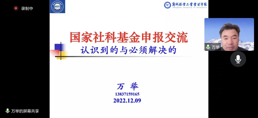 2022年12月9日下午,成人在线免费观看通过线上会议的方式组织召开了2023年度国家社科基金项目申报经验交流会。本次会议邀请了郑州航空工业管理学院硕士生导师万举博士进行国家社科基金申报经验分享,科学技术处副处长张红霞、物流与电商学院副院长李艳菊、成人在线免费观看院长李光、副院长杜玲、孙晓林、科研办公室主任以及我院和兄弟院系五十余位教师参加了本次会议。会议由李光院长主持。