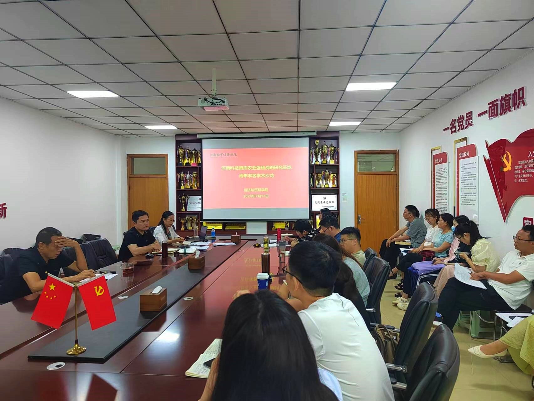 7月12日上午,河南科技智库农业强省战略研究基地(河南牧业经济学院乡村振兴研究院)青年学者学术沙龙在英才校区327会议室召开。青年学者齐聚一堂,围绕“智力服务地方社会经济发展的经验与思考”这个主题,开展学术交流,畅谈科研工作。乡村振兴研究院执行院长李光教授、研究院副院长梅星星副教授、研究院办公室杜玲副教授及二十余名团队成员参加了沙龙。