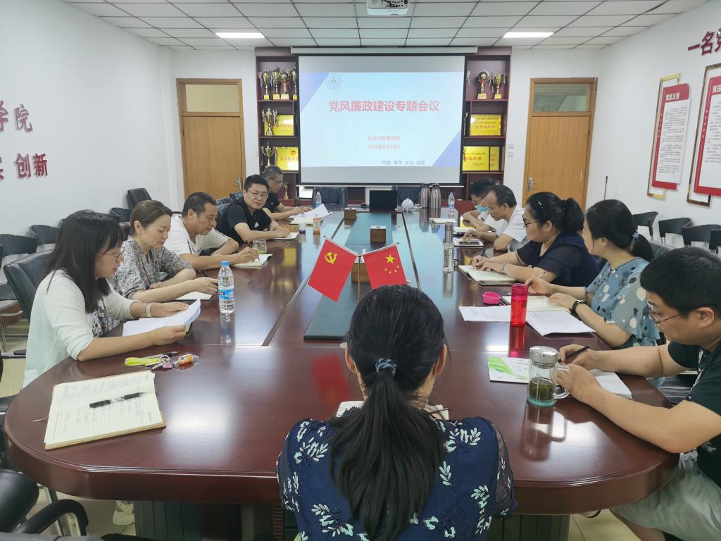 为树立廉洁新风,持之以恒正风肃纪,8月14日下午,经贸学院在英才校区327会议室组织开展党风廉政建设专题 教育,学习违反中央八项规定精神典型案例。学院科级以上干部、教研室主任参加了会议。