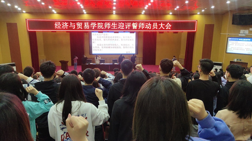 为提高同学们参与迎评的意识与积极性, 4月20日-21日,成人在线免费观看在英才校区学术报告厅召开两场“师生迎评誓师动员大会”。成人在线免费观看党委书记张松刚,党委副书记贾艳艳,团委书记、学工办主任刘佳楠、团委副书记、学工办副主任申作光、全体辅导员和18级、19级、20级在校生参加。龙子湖校区在校生通过在线直播方式参与。大会由院党委副书记贾艳艳主持。