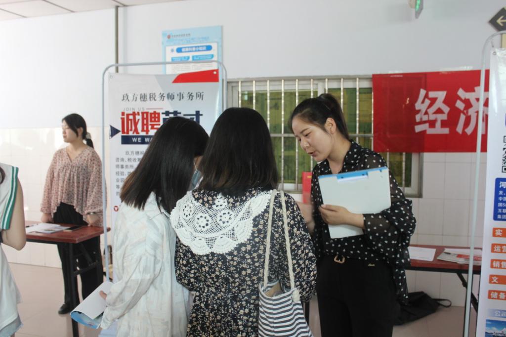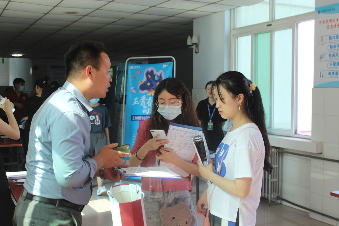 2021年6月10日,成人在线免费观看在英才校区教学楼AB连廊2楼举办夏季校园双选会。双选会是学校为应届毕业生和用人单位搭建的一个平台。此次活动中,河南浩丞科技有限公司,郑州裕禾图文有限公司,郑州丹尼斯百货有限公司等30多家用人单位前来应聘合格的毕业生,给毕业生带来了更多的就业机会。